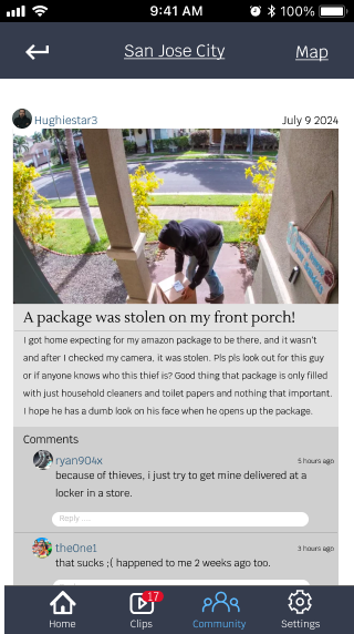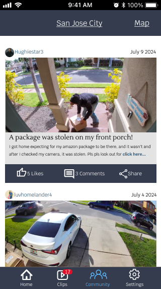After implementing the community page in the app, users are now able to share any incidents that happens to their property to raise awareness and feel safer with having more knowledge about their neighborhood.