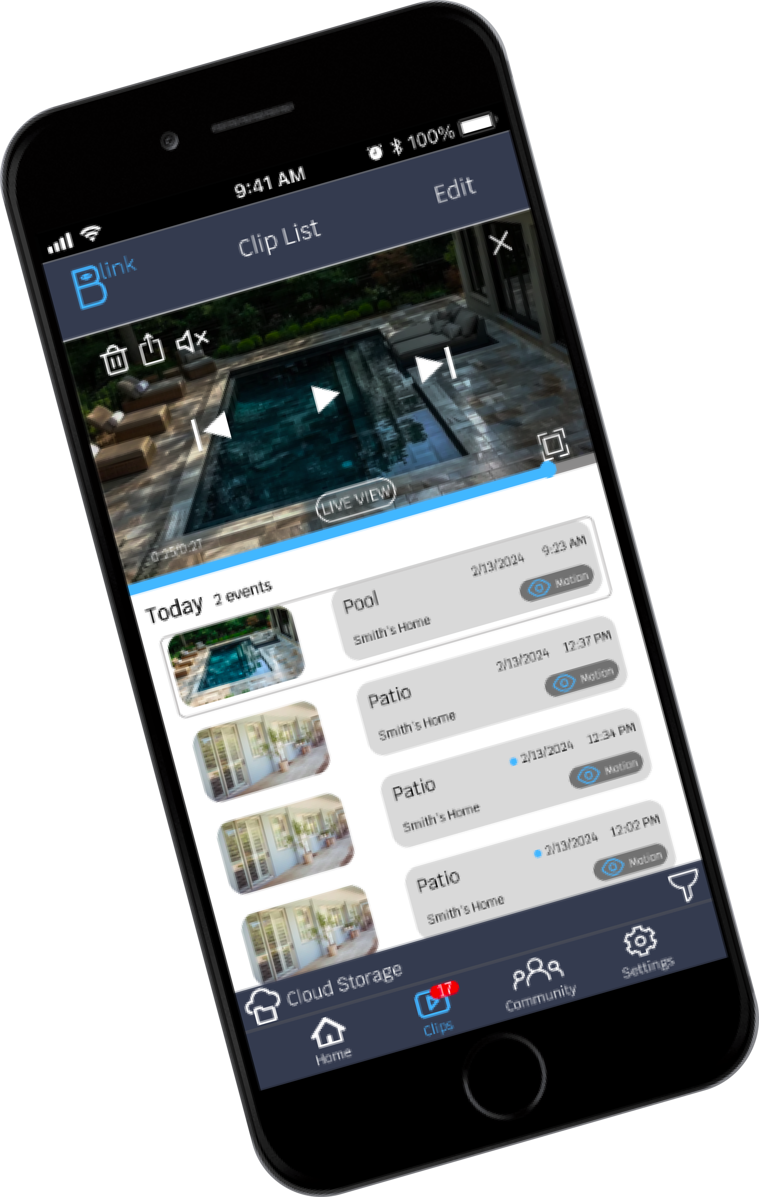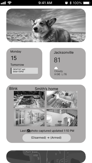 The purpose is to redesign the blink app to enhance users experience such as creating an easier access to quickly disarmed/armed through a widget, and input a community section to gain insights within the neighborhood.
